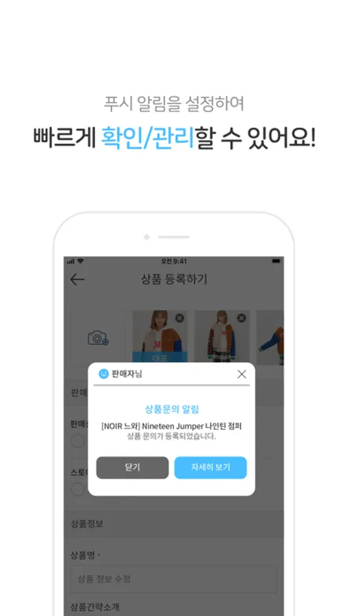 - 스마트폰을 통해 간편하게 상품을 등록/수정할 수 있습니다.