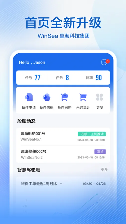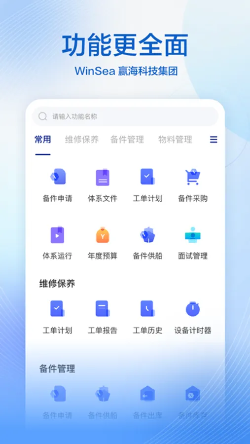 为客户提供整体航运数字化领域解决方案,具备船舶维修保养、备件物料管理、采购、船员、海务、调度、经营、修船、证书、油品、体系管理等船舶综合管理服务。