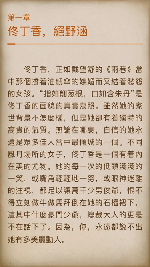 【優質體驗】翻頁流暢,排版精美,多種背景字體任意切換,帶妳暢享極致的閱讀體驗。