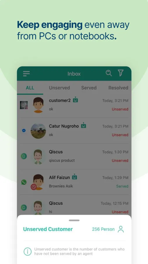 Qiscus Omnichannel Chat Mobile is an application that is developed to assist Admins and agents in using Qiscus Omnichannel Chat in order for them to keep engage with their customers even if they are away from their PCs or notebooks. To use this app, they can simply scan the QR Code provided in Omnichannel web.