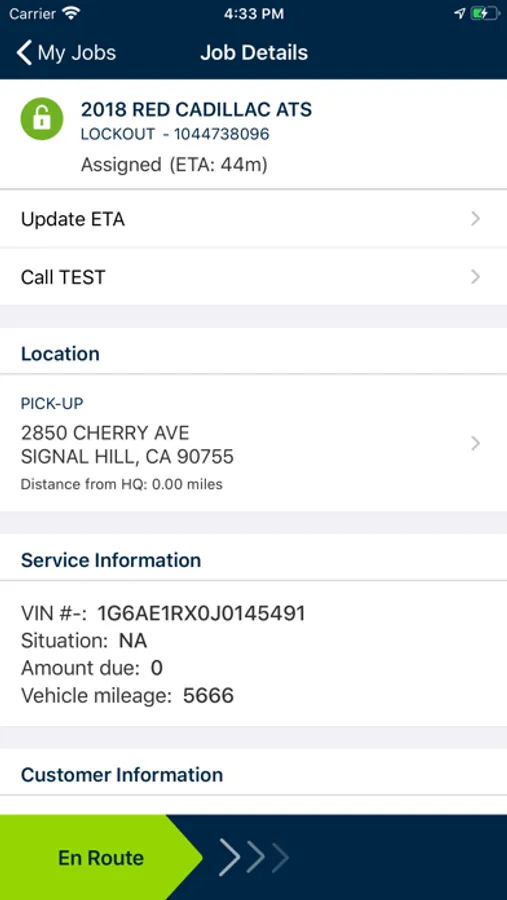 The Cadillac Technician Mobile App provides Cadillac Technicians functions to receive and manage Roadside Assistance service requests on their smartphone. The details needed to service the customer are displayed on the phone including: