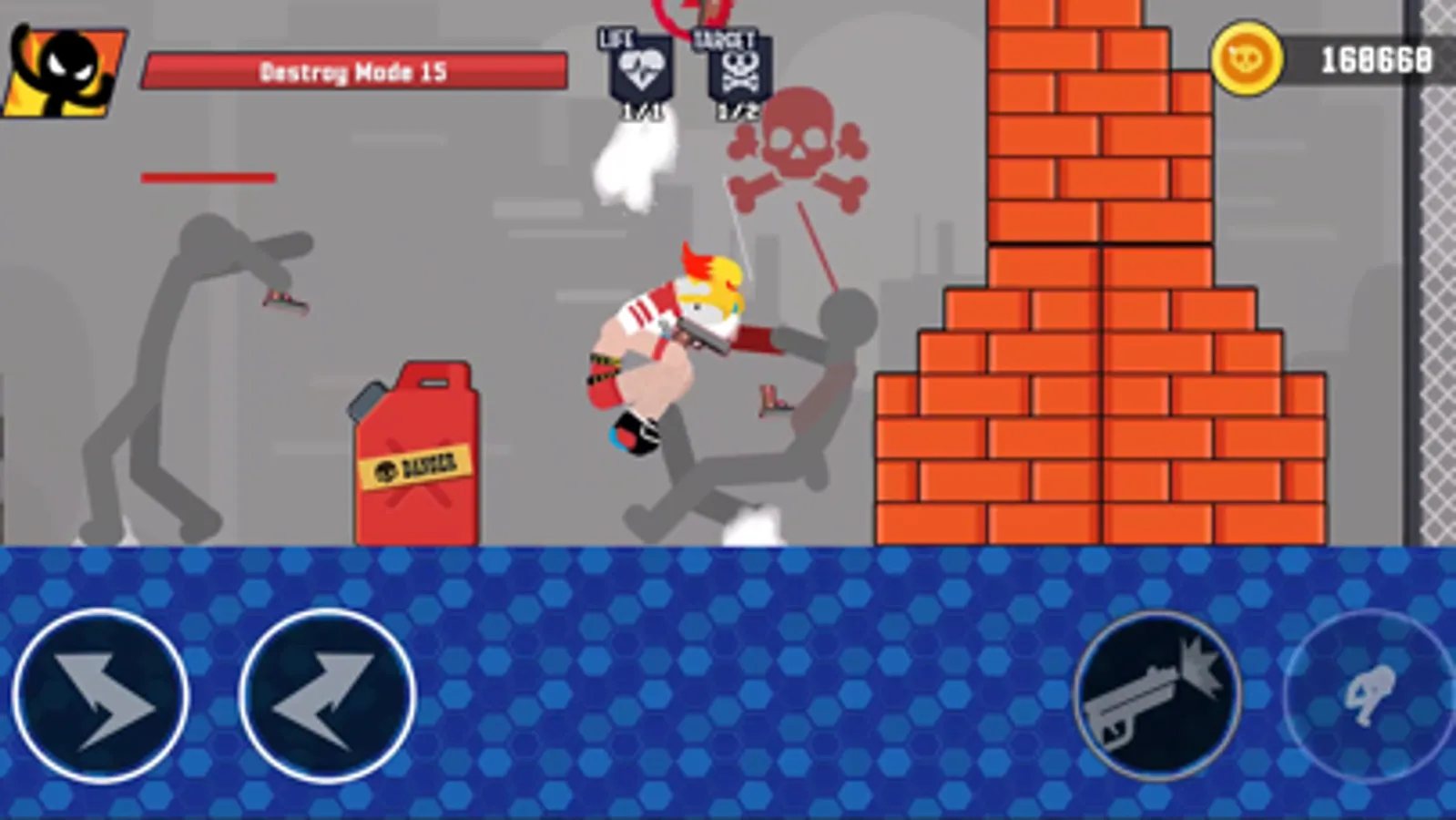 Power up your stickman to get the best performances in Running Mode or Destroy Mode