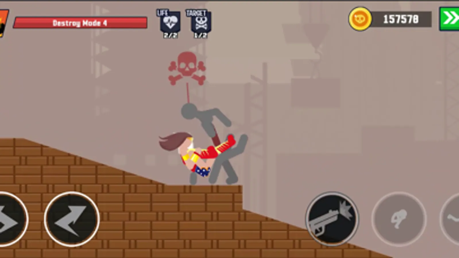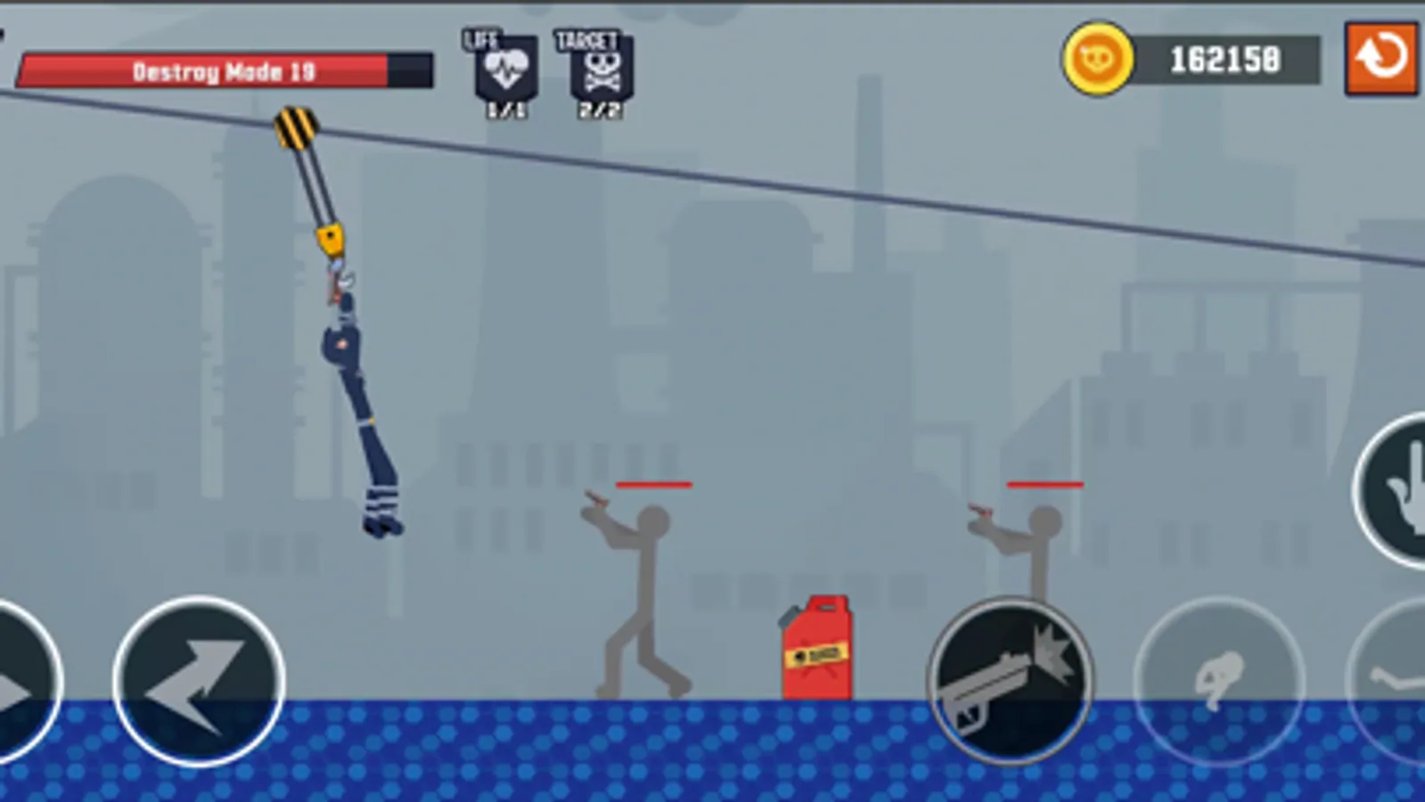 Destroy stickmans or running the finish line with using your parkour skills, weapons and epic slow motion effects.