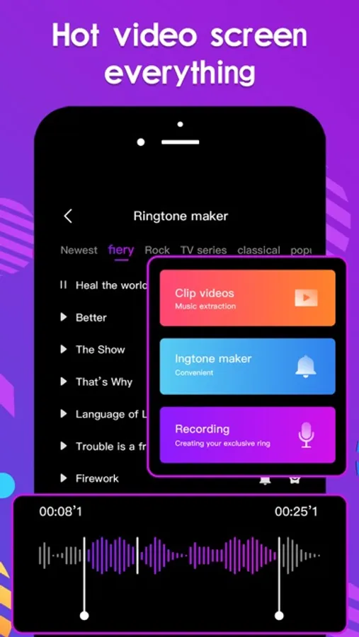 Ringtone production: a large number of ringtone materials are available. Fully functional.