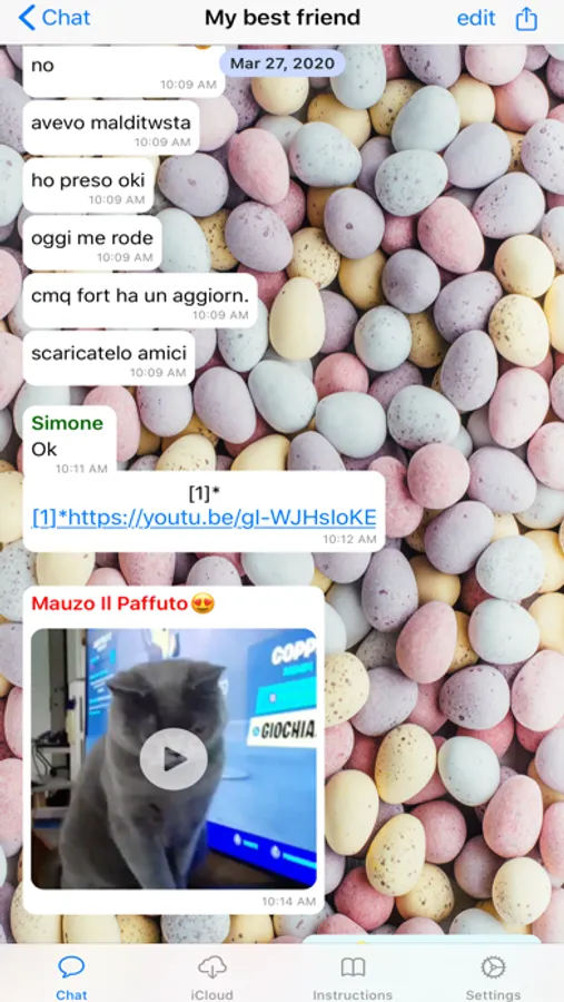 You can send the chat with a iCloud account.