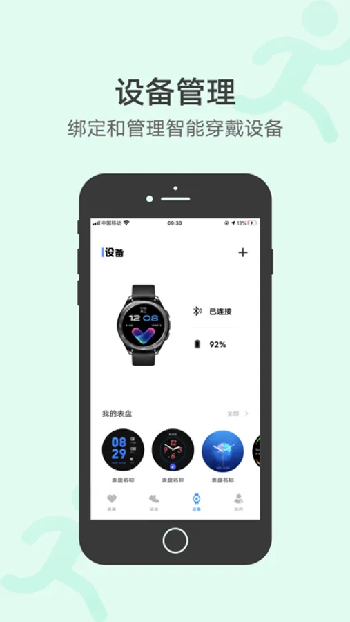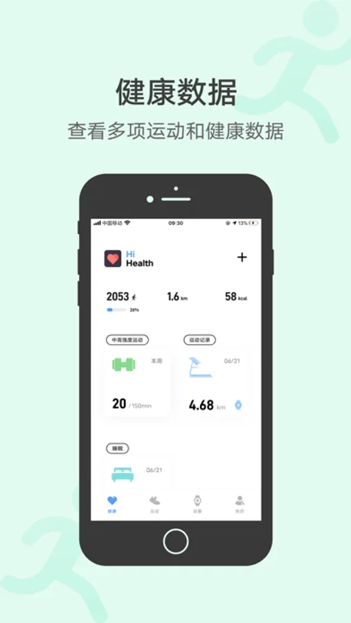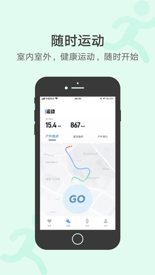 2)通过手机记录户外跑、室内跑、骑行等数据。