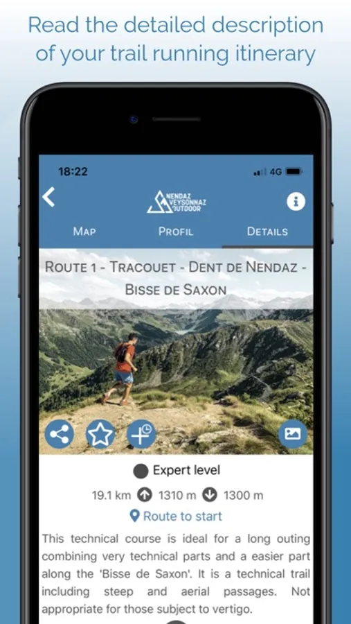 The Nendaz Veysonnaz Outdoor app enables trail runners to plan their runs as well to locate themselves in real time. Detailed descriptions of each trail ensure that runners stay on the right tracks and have a safe and fluid experience.