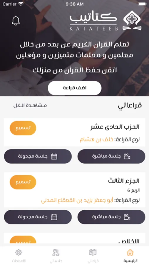 تطبيق كتاتيب لتعليم القرآن الكريم التطبيق الأول الذي يهتم بتصحيح تلاوة القرآن الكريم صوتيا من خلال نخبة من معلمي القرآن الكريم.
