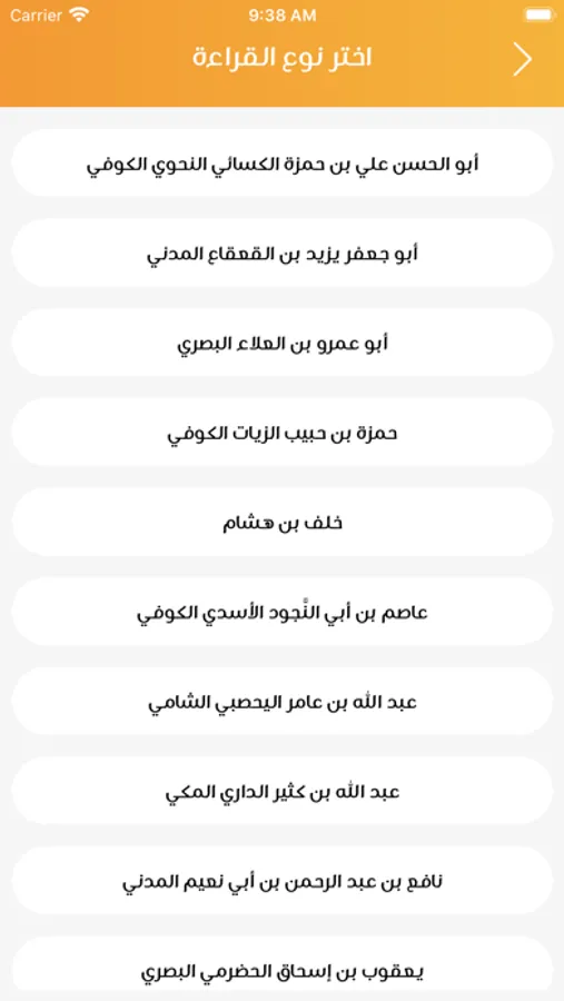 - اختيار قراءة من بين العشر قراءات.