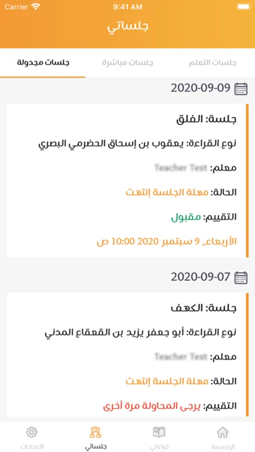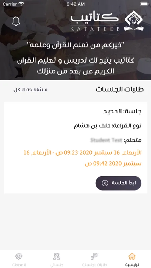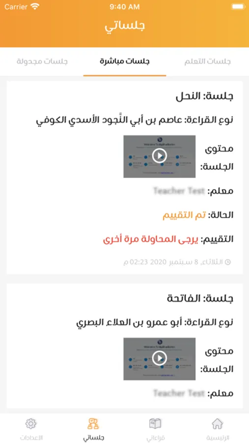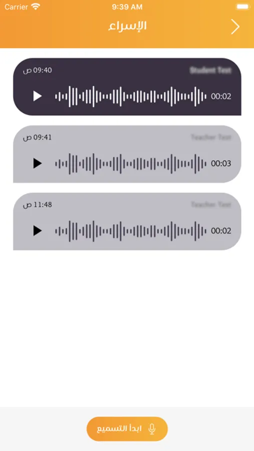 - يمكن للمتعلم بدء جلسة وارسال رساله صوتيه بقراءته للمعلم.