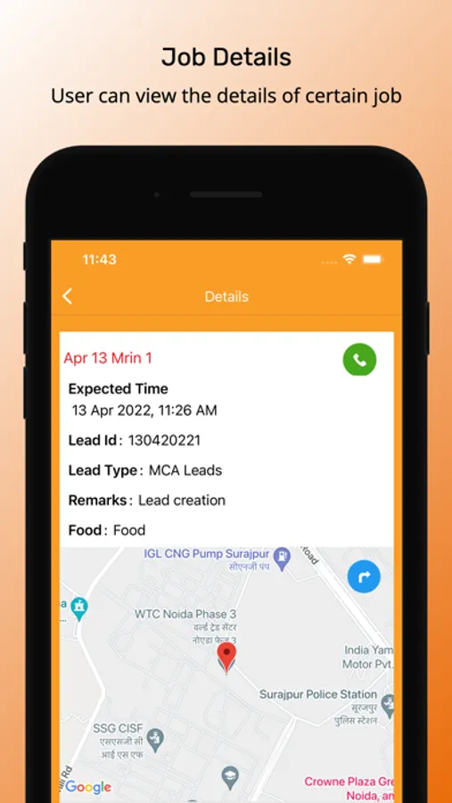 • Attendance management - start of day, end of day, # of working hours, location at start and end of day