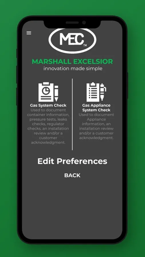 Use the MEC™ App to electronically fill out the Gas System Check and Gas Appliance System Check.
