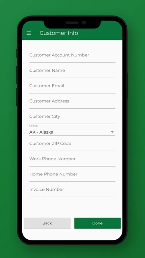 Customer Info – Capture customer account information such as the customer Account Number, Email, Address and Invoice Number.