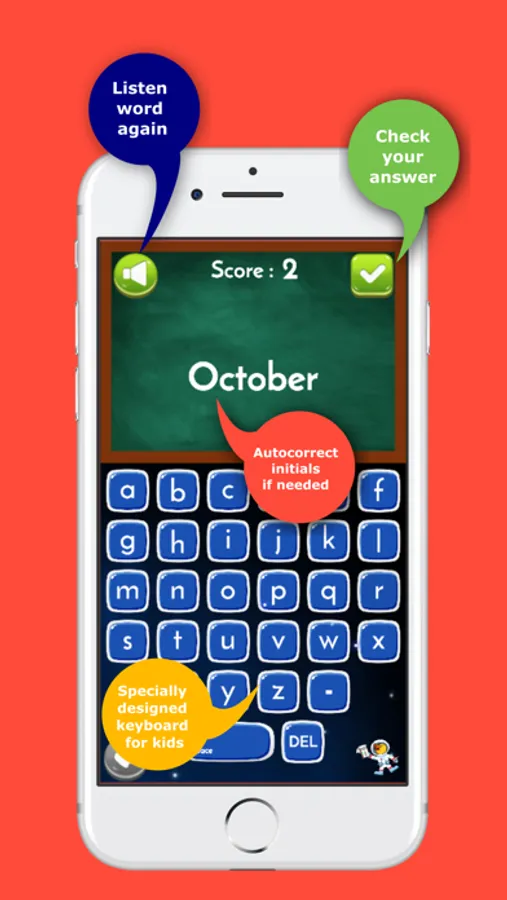 Spelltronaut : Primary Spelling provides every kid with a home learning tool to help them study and get 10/10 every spelling test. In addition to improving kids’ spelling, Spelltronaut : Primary Spelling app notably, positively affects kids’ reading ability, English pronunciation, helps to build a bigger vocabulary bank and improve typing speed.