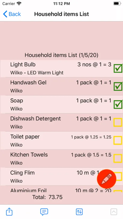 The list can also be used in Display mode which allows you to mark items as Pending or Completed or Not Available, to help you on the go while shopping.