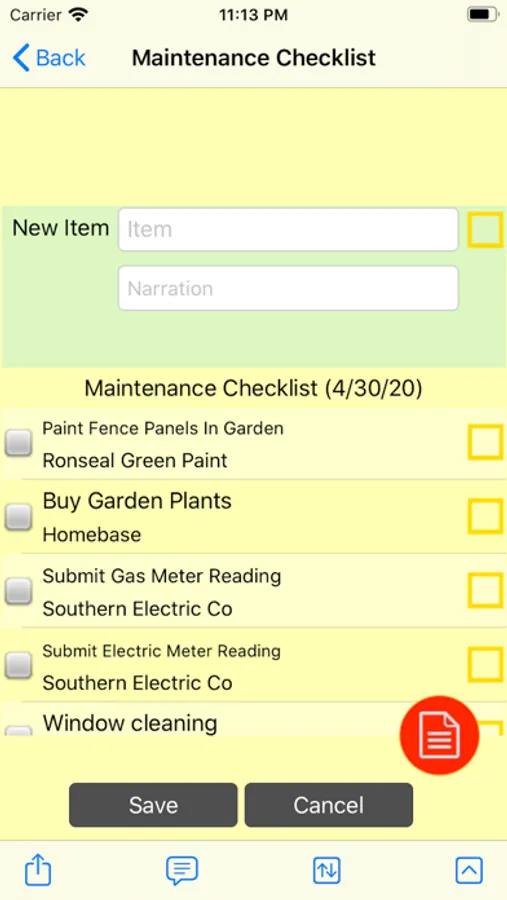 A list can be used in Input mode which allows you to add items with details about quantity, price, store, etc.