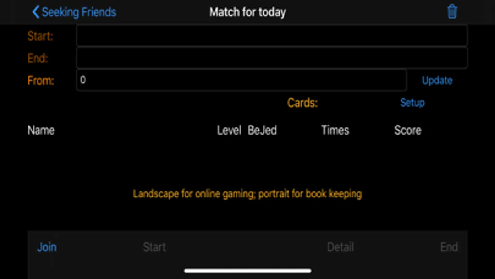 找朋友是一个基于回合的中国纸牌游戏。本程序是在线游戏(通过苹果游戏中心)和离线游戏簿记的组合。 换句话说,您可以使用这个程序与你的朋友或其他自动匹配玩家来玩在线找朋友游戏。 如果您发起在线游戏,比赛结果也将保存在您的设备上。 如果你与朋友面对面玩牌,你可以使用此应用程序做簿记。不再用纸和笔了。