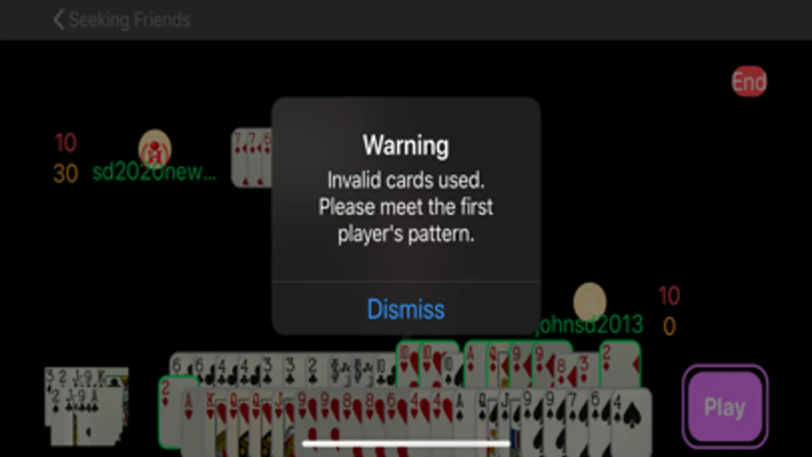 Seeking friends (ZhaoPengYou) is a turn based Chinese card game. This App is a combination of online game (via Apple Game Center) and offline game bookkeeper. In other words, you can use this app to play the game with your friends or other Auto-Match Players. If you originate the online game, the match result will be saved on your device as well. If you play the cards with friends physically, you can use this app to do the bookkeeping. No more paper and pen.