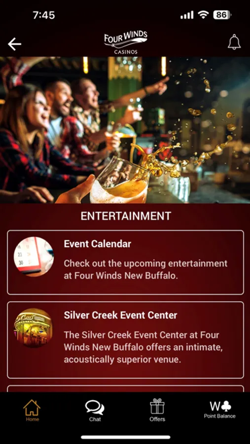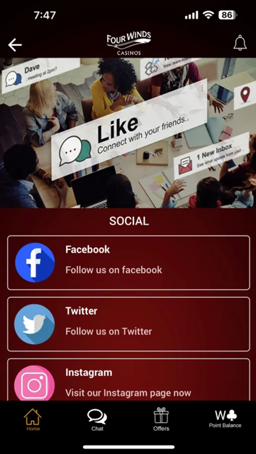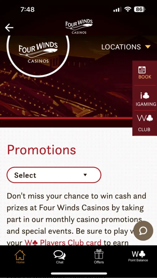 The Four Winds Casino app brings you right to the doorstep of all of our casino resorts. Stay in the know about our games, restaurants, hotel and special events. You can even check your player's club point balance and much more.