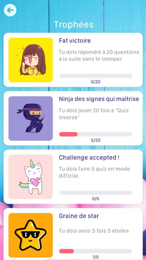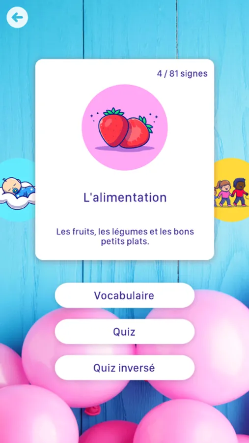 L’application permet de découvrir 2 nouveaux signes chaque jour grâce au quiz quotidien et de réviser régulièrement les signes déjà acquis.