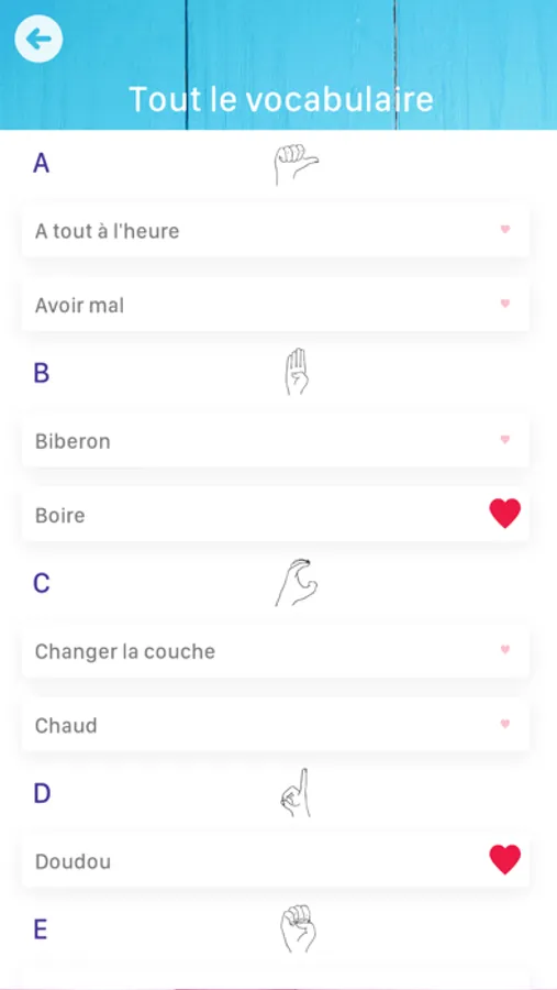 • Plus de 1000 signes classés par catégorie. Vous pouvez réviser uniquement les thématiques qui vous intéressent : les légumes, le sport ou les expressions … etc.