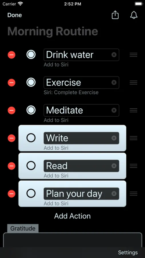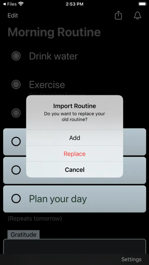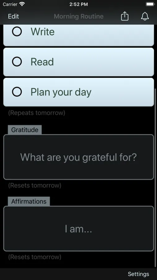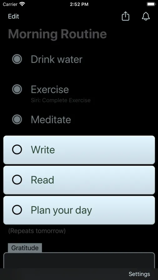 PRO TIP: Automate opening the Morning Routine Checklist directly after you stopped your alarm. It will be easier than ever to consistently do your Morning Routine. Use Shortcuts Automation