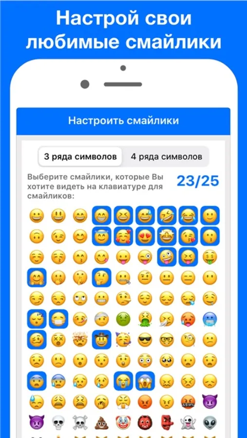 ► можно выбрать смайлики, которые будут показаны на клавиатуре