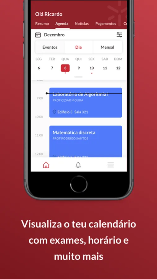 -Agenda e horário – consulte a agenda e os acontecimentos de relevo, bem como o seu horário