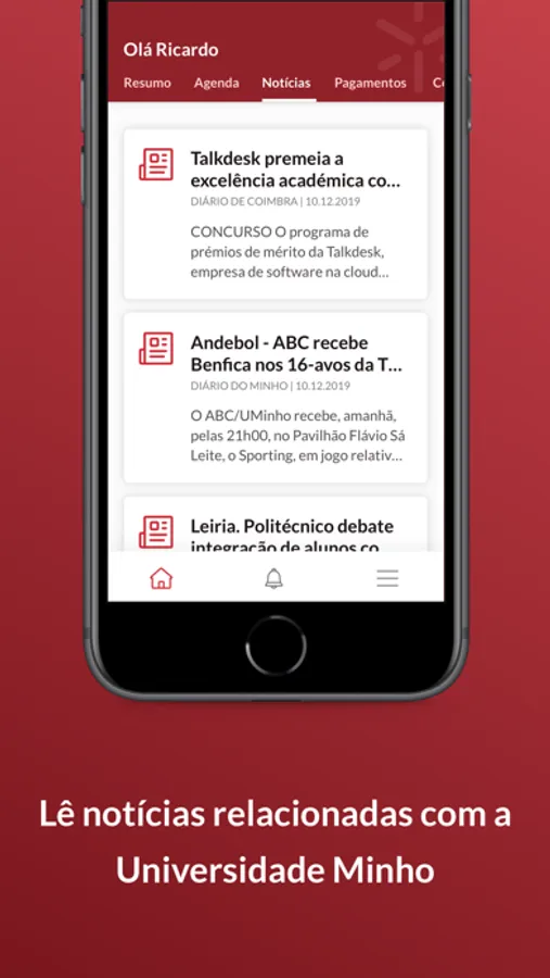 A aplicação para dispositivos móveis (App) da UMinho destina-se a ser utilizada de forma transversal por toda a comunidade académica, disponibilizando, em permanência, informação relevante sobre a UMinho, bem como o acesso a mecanismos de interação relativos a vários domínios de atividade: