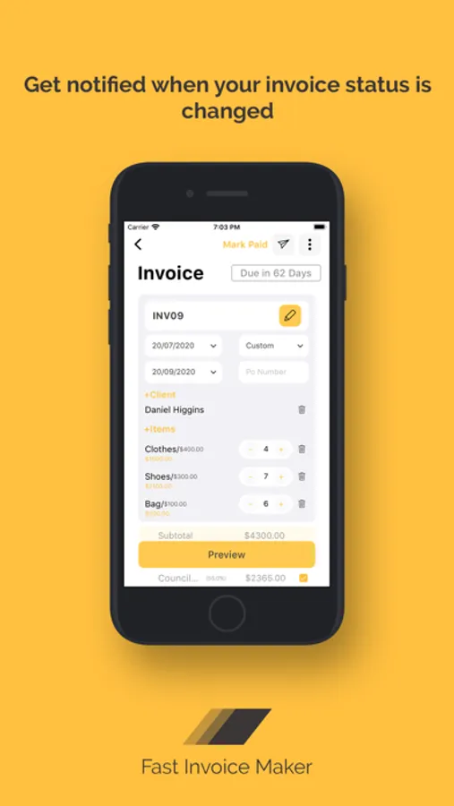 No limitations on the number of created invoices, customers, items, etc. during the trial period. You can buy the Monthly Subscription and get 7 days of free trial. Ready to start making estimates and invoices with ease? Download Fast invoice Maker now and start your free trial.