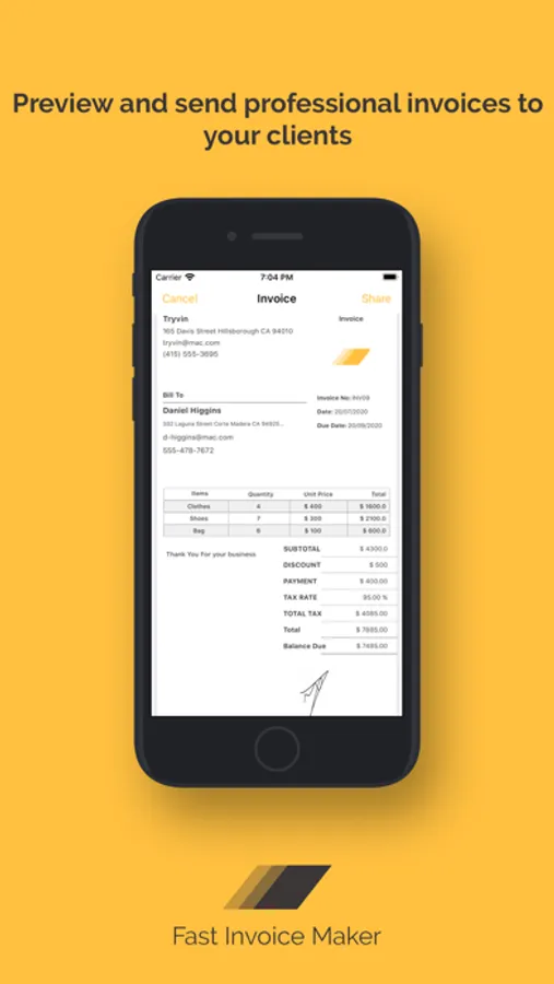 Make easy and fast invoices, estimates and get valuable insight about your clients, sales and payments. Whether you are a small/big company, freelancer or contractor, Fast Invoice Maker is designed for all types of users.