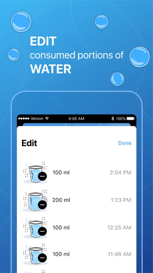 - Users can input the consumed volume of water through the push-notifications without opening the application.