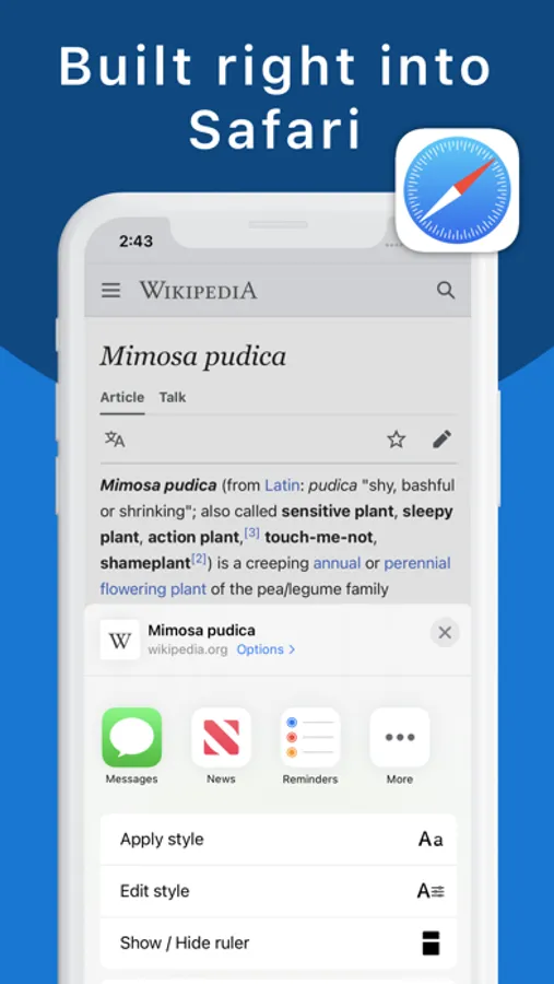 Navidys is a Safari extension designed to facilitate the reading on the web. My goal is to create a tool to help you read, to better understand texts and find pleasure in reading. Find the settings that are right for you !