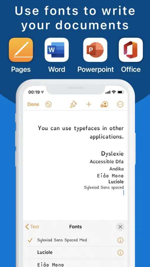 - You can now install typefaces on the system and use them in other compatible apps, like Pages (iOS 13 only)