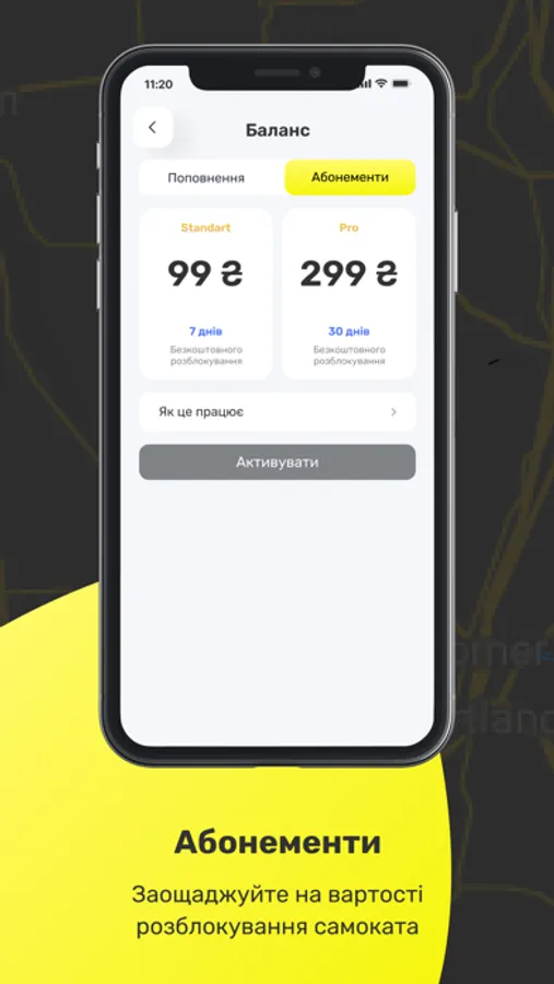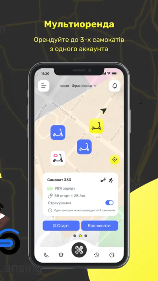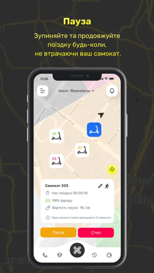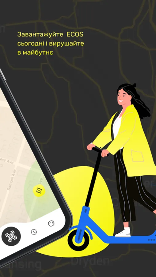 Розблокування самокату - для цього наведи камеру смартфону на QR-код (на кермі)