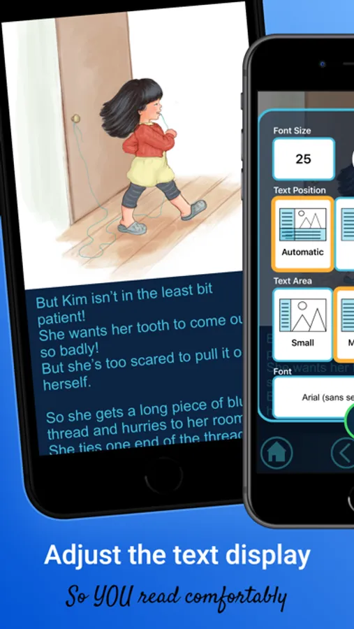 BookaBooka offers extra support for children who struggle with (learning to) read, such as children with dyslexia. The font, text contrast, line spacing and font size can be adjusted.