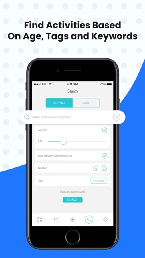 → A search function to help you browse through activities by age, keywords and tags (movement, art, STEM, communication, emotions, occasions, etc.)