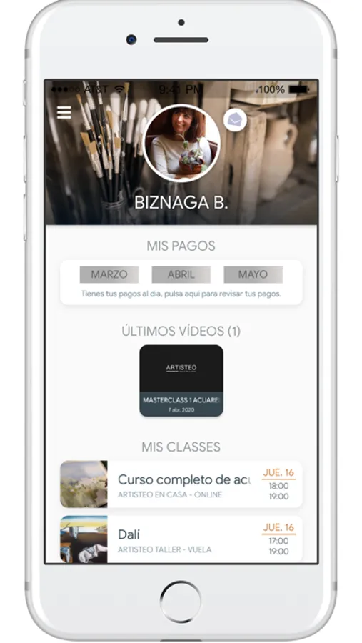 Podrás gestionar tus clases, perfil, pagos y cursos online desde nuestra APP Gratuita.