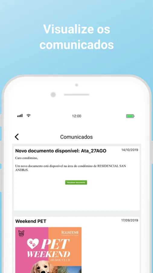 * Visualizar comunicados emitidos pela USE Administradora e pelo síndico de seu condomínio;