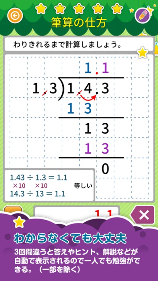 さらに親にもうれしいサポート機能付き!子どもの「何で?」に分かりやすく答える解説付き。親子で、理解が進んだら子どもだけでも楽しく学習できるアプリです。