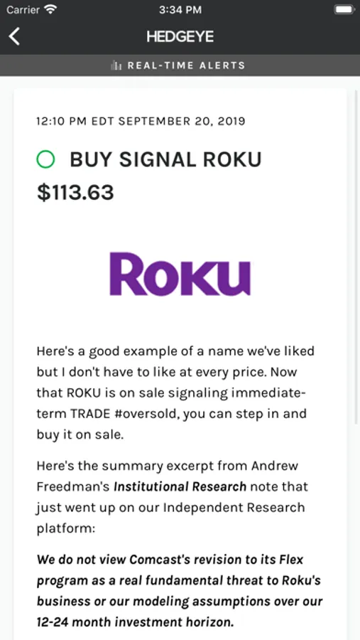 Real-Time Alerts features LONG, SHORT, or COVER stock and ETF signals sent directly by Hedgeye CEO Keith McCullough. Each signal is backed by Keith’s quantitative risk range model and is selected from among the best qualitative ideas of our research analyst team.