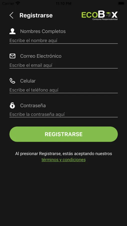Después de descargar la aplicación, los usuarios pueden registrarse proporcionando los detalles de su perfil, o utilizando los perfiles ya existentes para otras redes sociales o correos electrónicos. La aplicación proporciona un marco de gestión para rastrear y administrar la actividad de reciclaje de cada participante, y los incentivos obtenidos como resultado de ello, los cuales se canjean a través de la misma app. El App permite también consultar la ubicación de las Unidades EcoBox más cercanas al Usuario.
