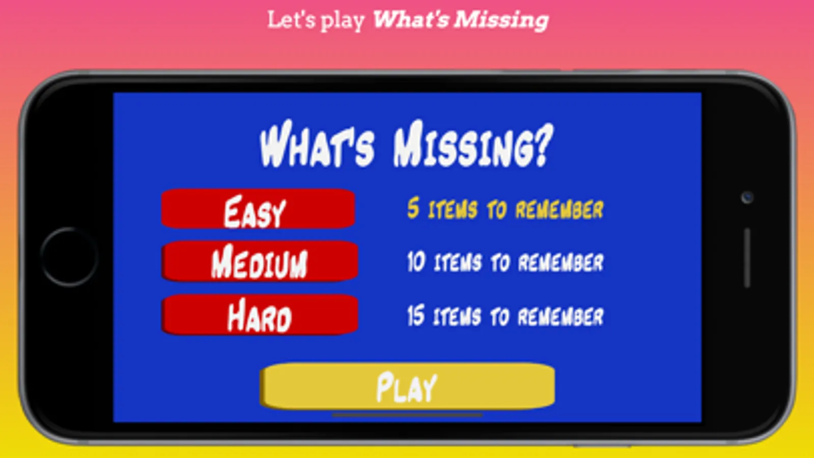 - Choose at which difficulty you want to play. The easy level contains only 5 objects, medium contains 10 objects and hard contains 15 objects. This is the number of different items you need to remember during the round.