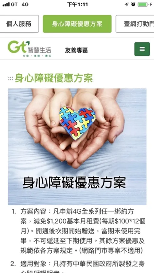方案資訊:身心障礙優惠、壹網打勁、全新壹起省、老客戶方案。