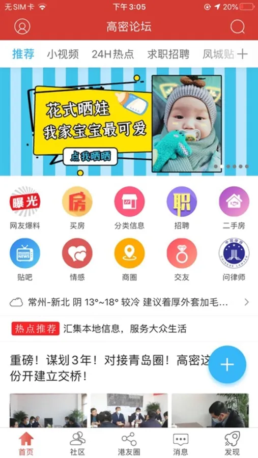 高密论坛官方APP,一站式本地生活服务平台。在这里,分享本地热点,交流生活故事,结识同城好友,了解及时全面的生活信息。