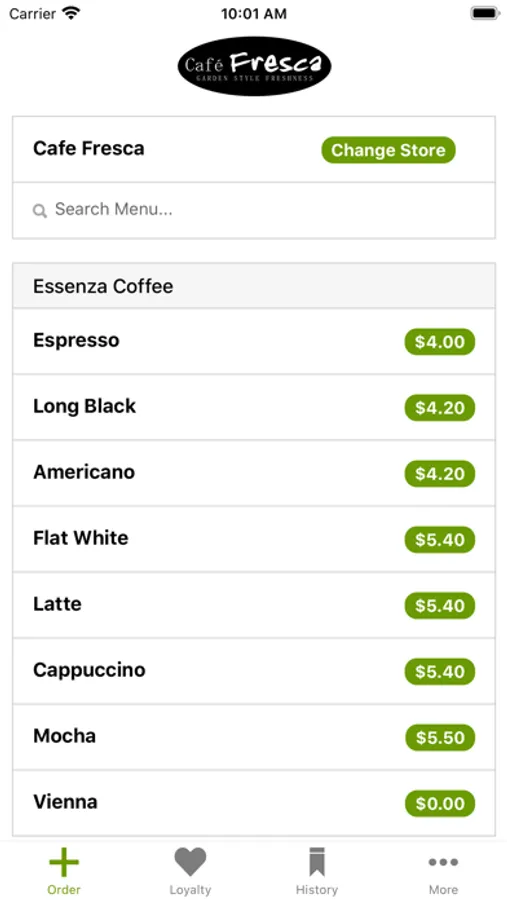 The Cafe Fresca mobile app enables you to order and pay for your coffee from your iPhone as well as look after your loyalty rewards.