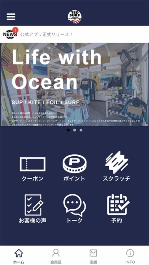 公式アプリでできること: ショップのクラブメンバーになれます / ショップの最新情報をお届けします / お店でお買い物した際には利用ポイントがつきます / アプリから直接スクールのご予約も可能になります。