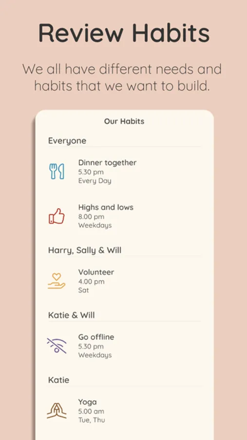 Share your account with the whole family. Older children can set their own habits. You can hold each other accountable. You can give access to a co-partner, babysitter or grandparents so no matter who is caring for your children, you can all be on the same page.