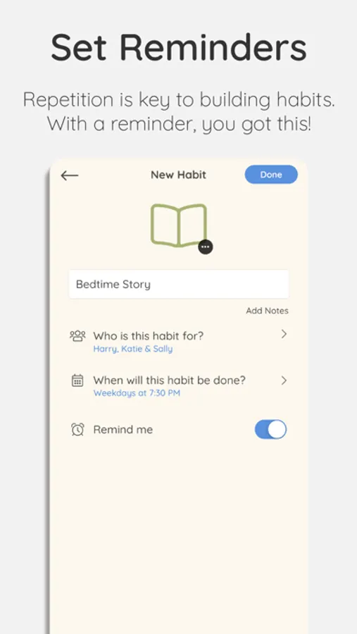 The mind of a parent can be a crowded place! A scheduled reminder is that little nudge you need to get those small but vital habits going. Be the family that gets things done.