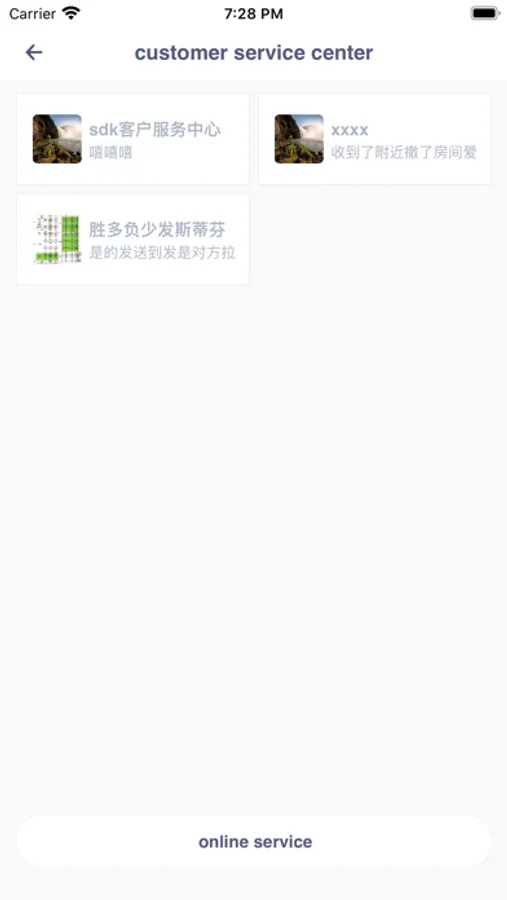 在线咨询:咨询机器人、咨询人工客服(收发图片、发送语音)、发送表情;
